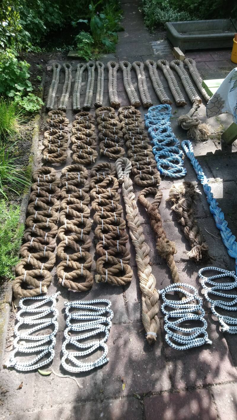 Via leerlingmolenaar Maarten Tromp van zaagmolen de Heesterboom in Leiden het aanbod gekregen van ruim 85 meter touw. Bedankt!